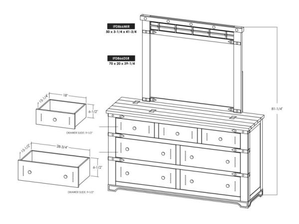 This Magnolia Manor mirror features Poplar solids and White Oak veneers with a Weathered Bisque finish, enhanced by heavy artistic chipping. Its scrolled design and 1-inch beveled edge with dog bone accents add an elegant touch.