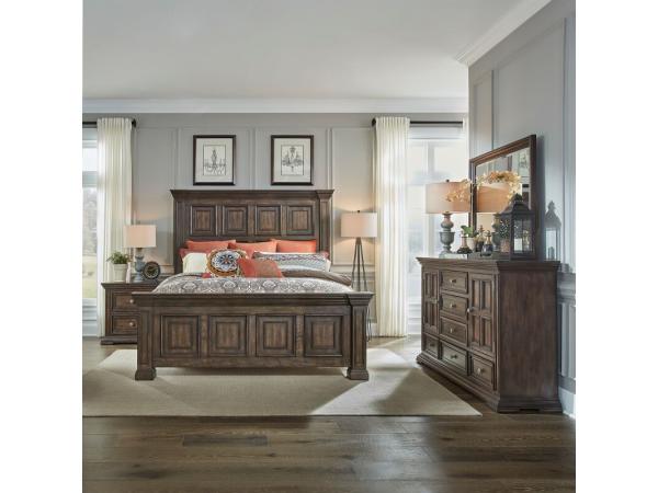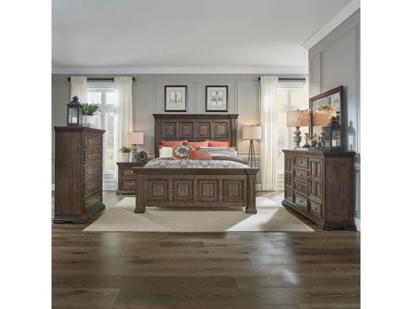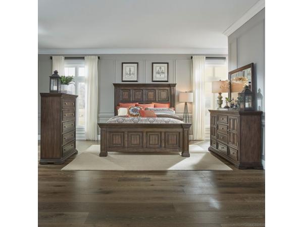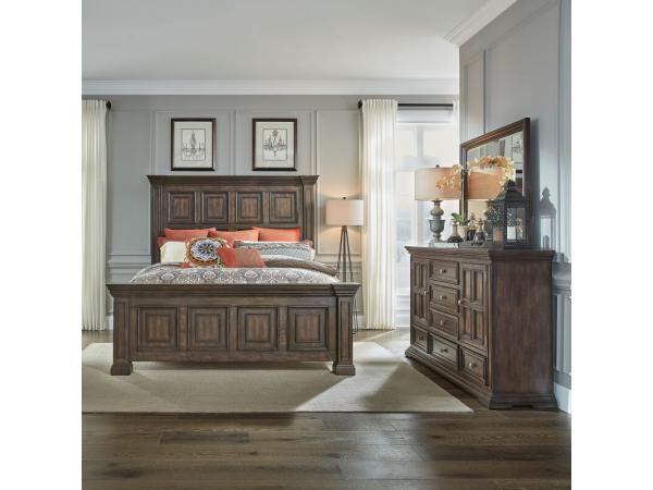 King Mansion Headboard,King Mansion Footboard,Panel Bed Rails,2 Door 6 Drawer Dresser,Mirror,5 Drawer Chest