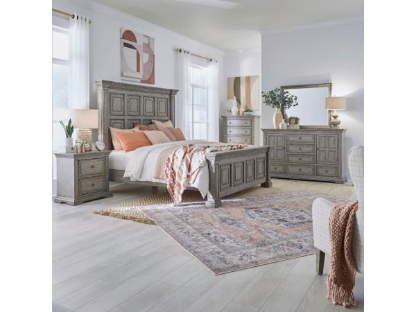 Big Valley Queen Panel Bed, Dresser & Mirror, Chest