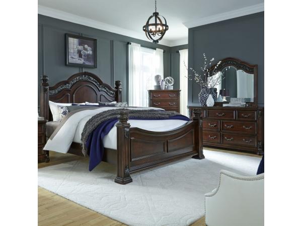 King Poster Bed, Dresser & Mirror, Chest
