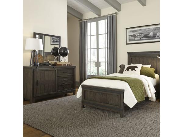 Twin Panel Headboard,Twin Panel Footboard,Barn Door Dresser,Mirror,Panel Bed Rails