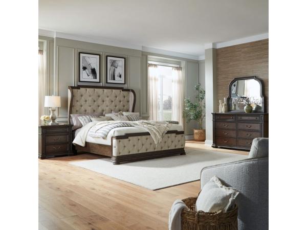 King Shelter Bed, Dresser & Mirror, Night Stand
