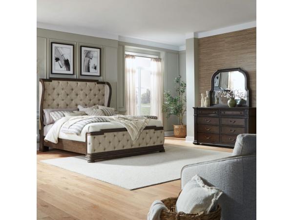 King Shelter Bed, Dresser & Mirror, Chest