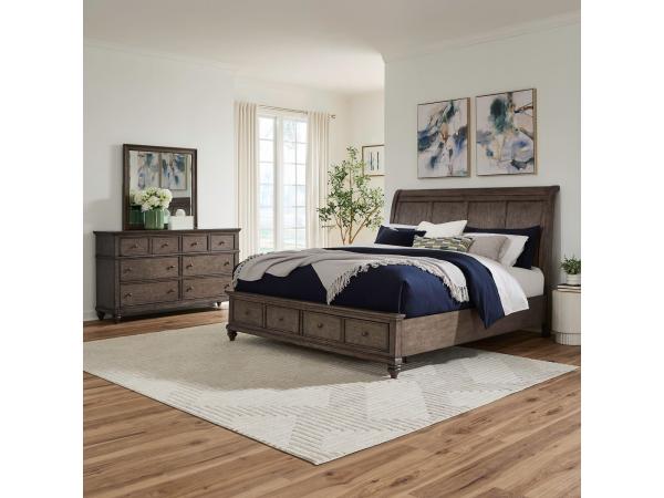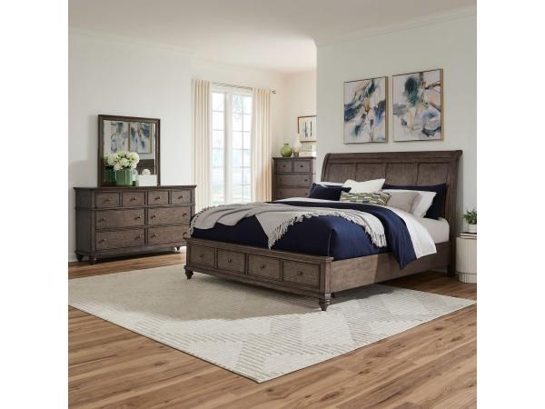 King Storage Bed, Dresser & Mirror, Chest
