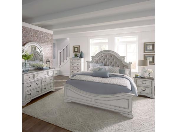 King California Uph Bed, Dresser & Mirror, Chest, Night Stand