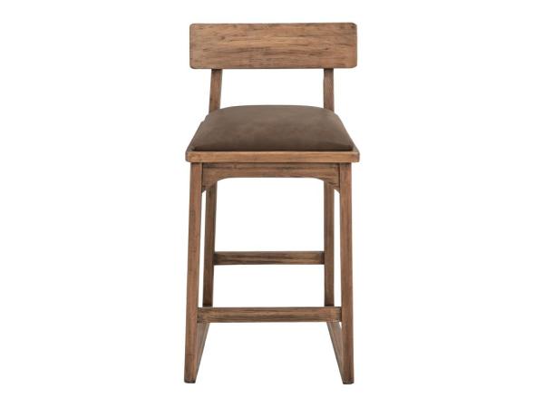 The Tamesis stool collection combines elegance with comfort. It features a durable metal base and faux leather upholstery in brown.