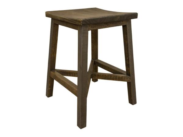 The Loft Brown stool is meticulously crafted from hand-stained and distressed pine wood, featuring a comfortable saddle seat. With its
