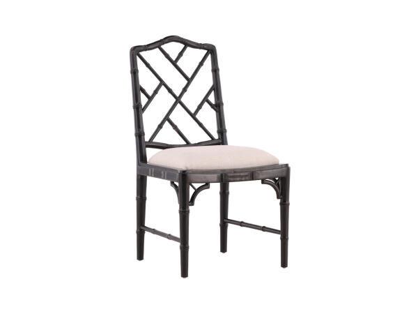 This beautiful Chinese Chippendale side chair with a black finish is as happy at a desk or vanity, as it