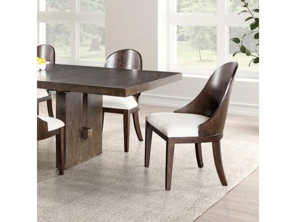 Product Details Style Transitional Color/Finish Chestnut Material Fabric, Solid Wood, Wood Veneer, Others Frame Finish Chestnut Table + 8 Chairs
