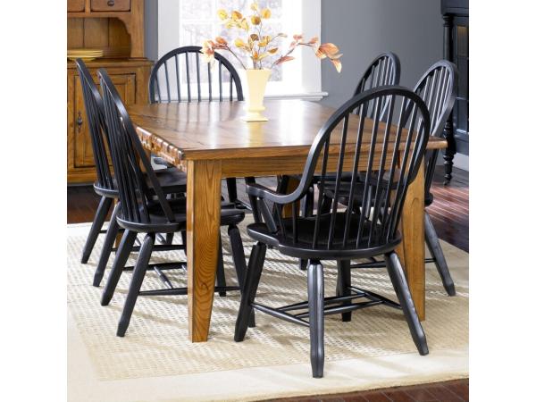 Bow Back Side Chair - Black,Bow Back Arm Chair - Black,Rectangular Leg Table - Oak