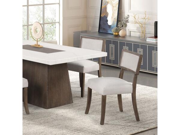 Product Details Style Contemporary Color/Finish Dark Walnut Material Engineered Wood, Fabric, Marble, Oak Veneer, Rubberwood Table + 6 Chairs Yes