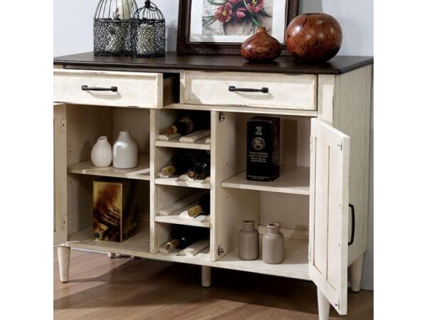 Warm up your dining room with this rustic inspired server, which offers added functionality through multiple storage compartments. The combination