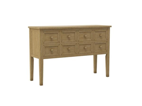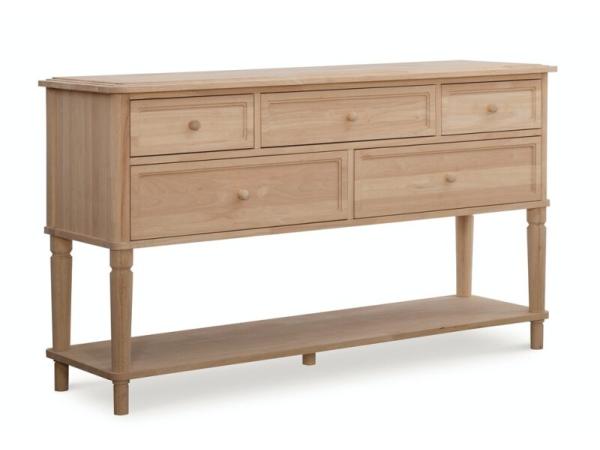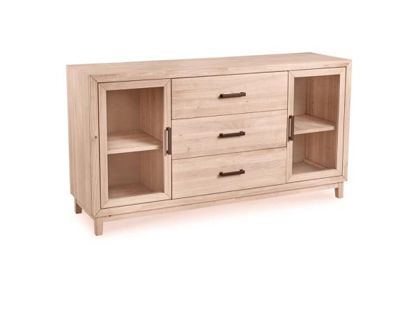 Product Details Constructed of Acacia solids and veneers Yes Framed drawer fronts and end panels Yes Three drawers are trimmed