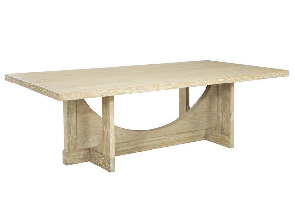 The Ackworth Dining Table is a stunning piece crafted from solid wood, boasting a streaky light tan finish that exudes