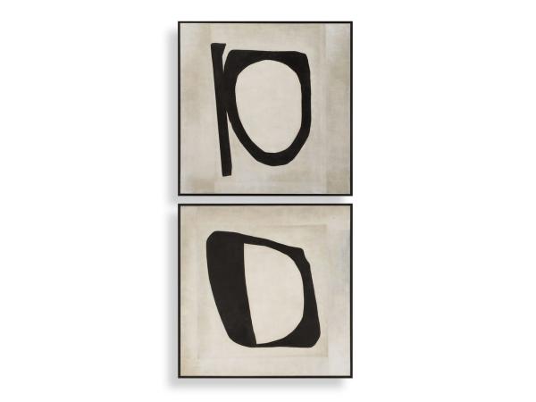 This set of two hand painted canvases embody a more mature approach to a monochromatic palette. It showcases a background