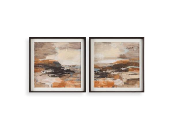 Cinnamon Shore Framed Prints feature a unique abstract design with shades of burnt sienna and umber. Each print is accented
