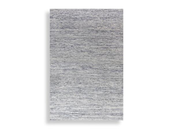This hand woven indoor-outdoor rug features a contemporary pattern with a casual feel in shades of ivory mixed with warm