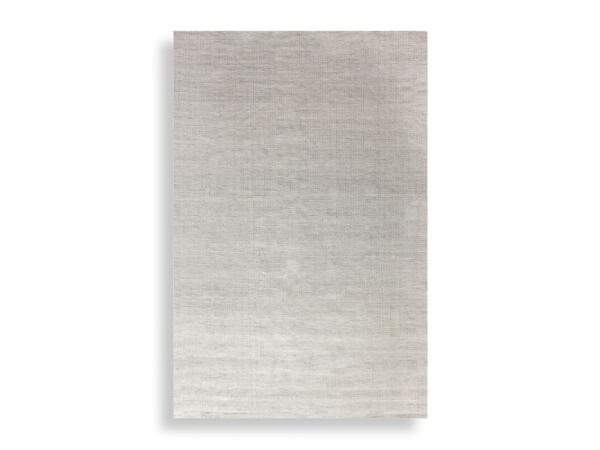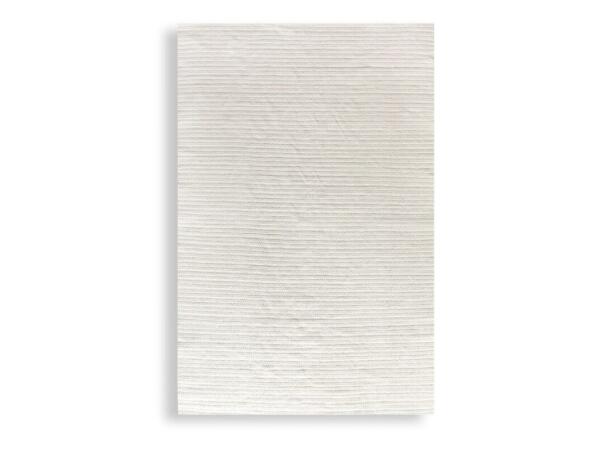 The Kenyan Rug features tufted construction using undyed wool in beige and brown tones, showcasing a geometric cutout pattern with