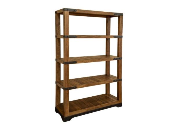 This unique Trellis Lane accent bookcase is crafted from solid mango wood with a weathered black finish and hand-carved end panels. It offers five shelves for storage, anchored by block legs.