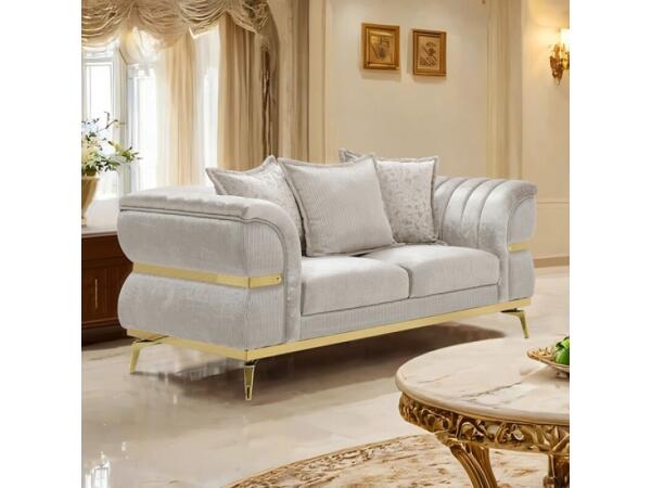 Product Details Style Glam Color/Finish Beige/Gold Material Fabric, Stainless Steel, Solid Wood, Others