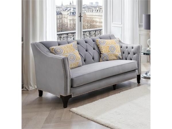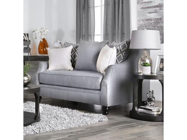 Product Details Style Transitional Color/Finish Gray Material Fabric, Foam, Solid Wood 100% Polyester Fabric Yes High Density Foam Yes Button