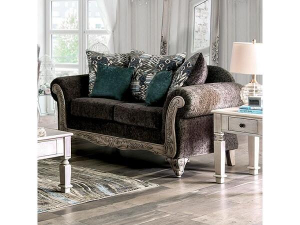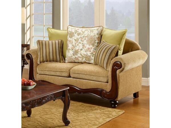 Create a never-before-seen living room with this unique yet traditional styled love seat. The intricate wood trim accentuating the front