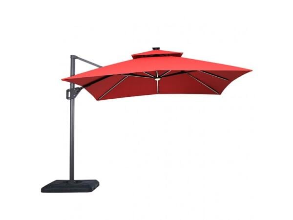Aurora 10 Ft Square Umbrella w/ Double Top w/ LED + 37″ Large Base