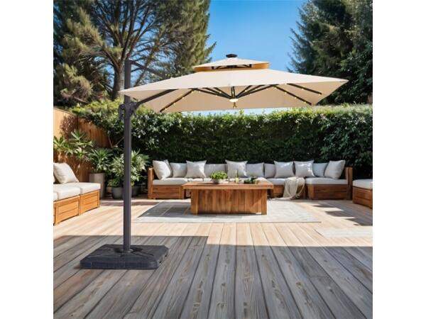 Xico 8 Ft Square Umbrella w/ Double Top w/ LED Light + 37″ Large Base