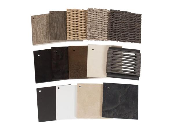 Highly resilient all-weather wicker featuring an organic textured surface and variegated mocha tones.