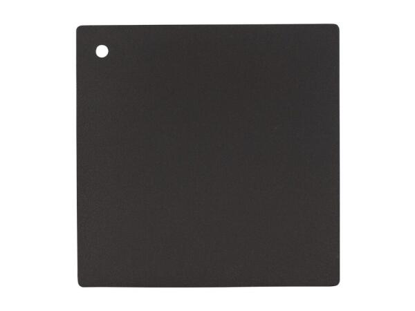 Powder coated Aluminum in a black finish with slight coffee undertone warmness. This complex multi-step coating brings out a very