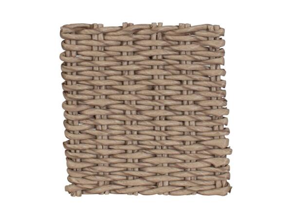 Highly resilient all-weather wicker is twisted and finished in variegated oatmeal, emphasizing a natural appearance.
