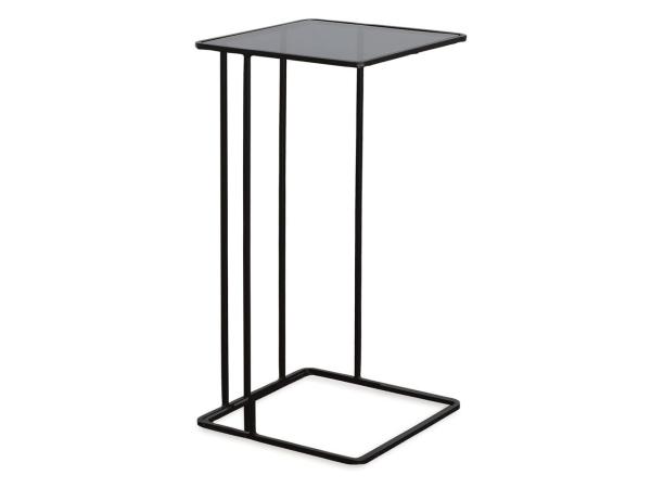 Minimally designed with versatility, this petite hand forged iron accent table is finished in brushed black with a smoked glass