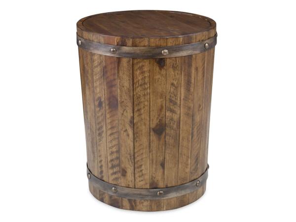 Capturing the essence of an authentic wine barrel, this solid distressed acacia wood piece is finished in a weathered walnut