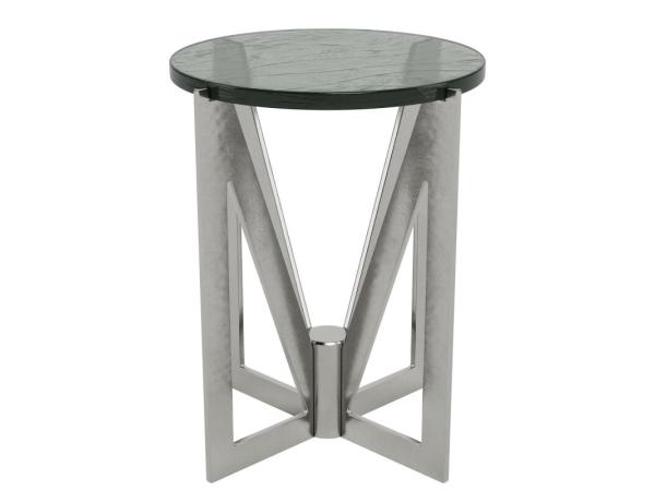 Product Details Round End Table Glass Top Constructed of hand cast glass tops on forged metal base Round End Table
