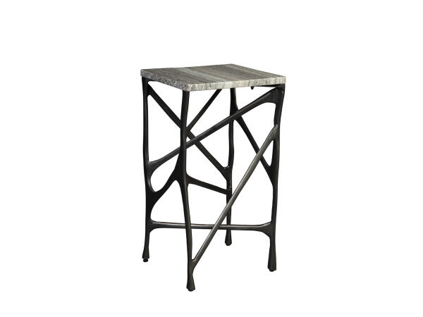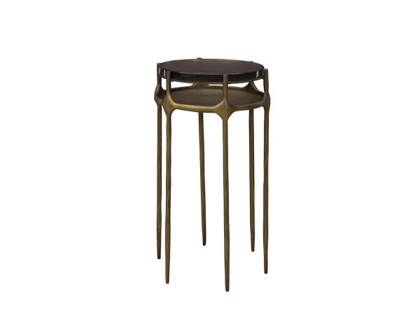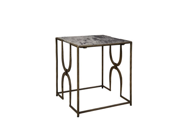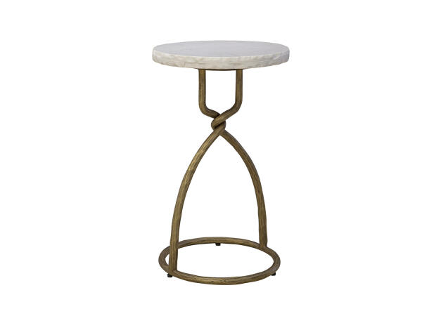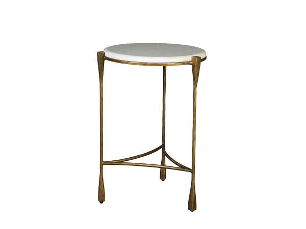 The Beale End Table brings refined elegance and subtle drama to your living space. Its brushed gold iron base offers