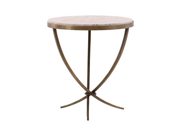 The Sevran Side Table brings a touch of vintage charm with its brass base and timeless materials. Its brass base