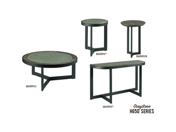 The Graystone collection features a cocktail table, end table, chairside table, and sofa table. Product Details Material Metal Finish Rustic