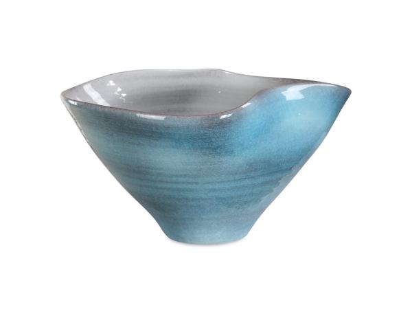 Elevate your decor with this stunning ceramic bowl, featuring a captivating blue crackle glaze with gray and white interior and