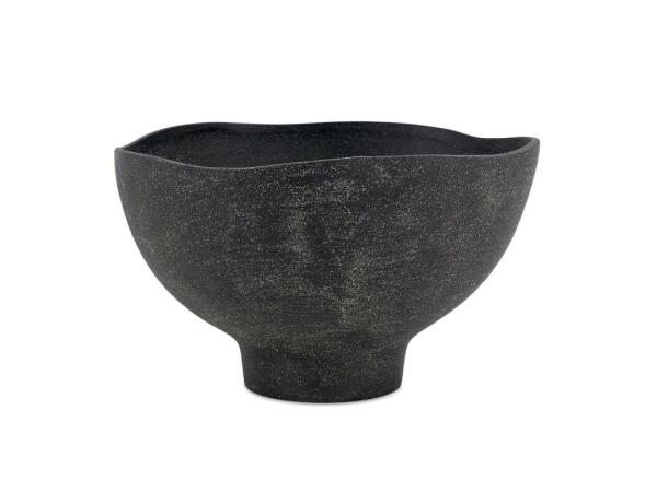 Crafted from earthenware, this bowl has a unique, organic shape with a subtly waved rim. Its matte black finish features