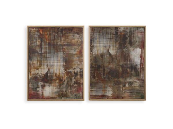 Featuring a captivating interplay of rich earth tones, dynamic brushstrokes, and abstract textures, Molten Patina giclee on canvas is surrounded