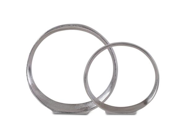 Aluminum accessories showcase a contemporary look with streamlined curves finished in black nickel. Safe for outdoor use. Sizes: S-12x11x2, L-14x14x2