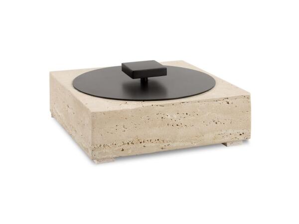 This low-profile square travertine box is a perfect blend of natural elegance and modern design. Featuring a beautifully textured travertine