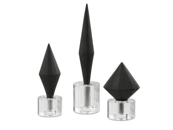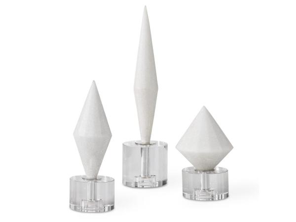 Elegant white diamonds are crafted from ivory man-made stone that accurately replicates the look of Thassos marble atop crystal bases.