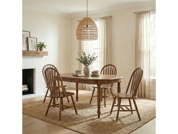 This gathering table top features a 12-inch butterfly leaf for easy expansion and is detailed with a softly rounded edge and square bead molding. It is designed to be paired with a compatible gathering table base.