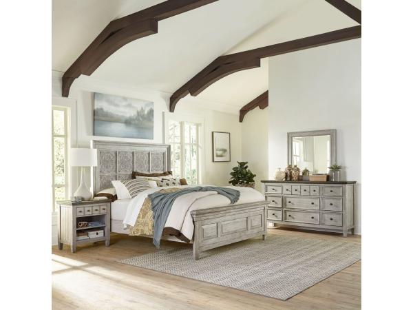 Heartland Opt Queen Panel Bed, Dresser & Mirror, Night Stand