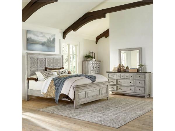 Heartland Opt Queen Panel Bed, Dresser & Mirror, Chest