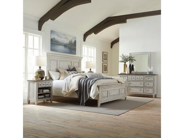 Heartland Queen Panel Bed, Dresser & Mirror, Night Stand