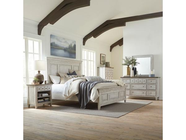 Heartland Queen Panel Bed, Dresser & Mirror, Chest, Night Stand