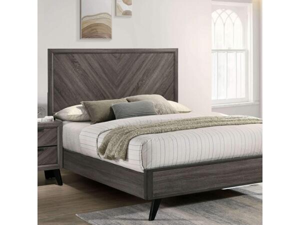 Something about this bed’s cool gray finish and chevron grain pattern gives it a stylish vibe. The diagonal replicated grain