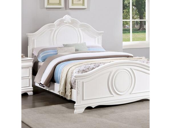 Visually appealing with its regal headboard and intricate molding, this wooden collection is the perfect focal point for any transitional